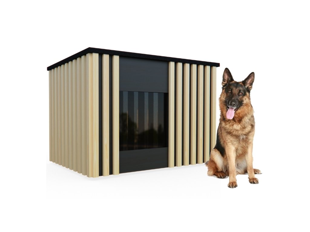 Die moderne isolierte Hundehütte MODERN ELEGANCE passt perfekt in ein modernes Familienhaus und stört nicht einmal das Aussehen eines Designer-Gartens.