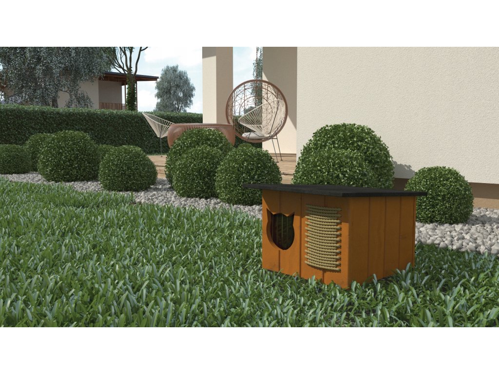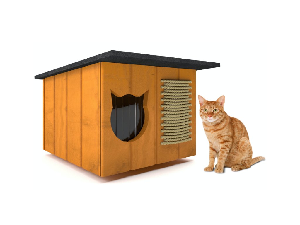 Dieses schöne Katzenhaus ist sowohl für Innen- als auch für Außenkatzen geeignet. Das Katzenhaus ist für 2 erwachsene Katzen geeignet.