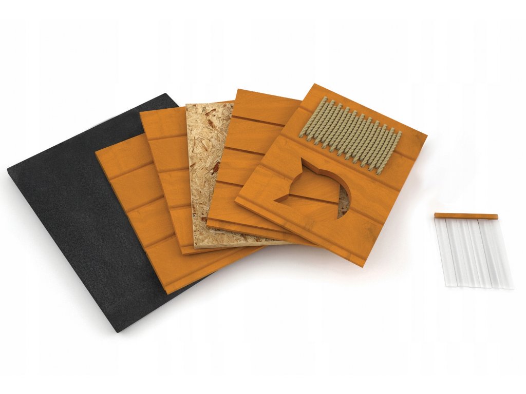 Die Katzenhäuser werden aufgeklappt geliefert. Sie erhalten die Wände des Katzenhauses zusammen mit einem Montagesatz mit Schrauben, einer Anleitung mit detaillierten Anweisungen und 250 ml Holzschutzmittel. Das Haus ist nicht gestrichen, es muss also mit der mitgelieferten Farbe imprägniert werden.